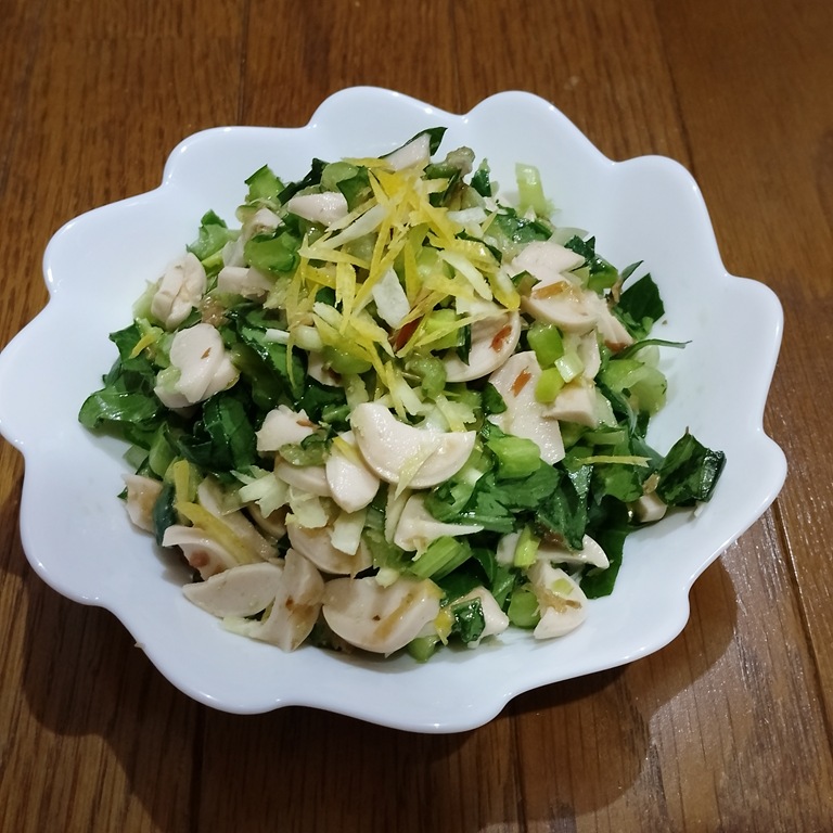 ① 小松菜と魚肉ソーセージを好みのサイズに切る。