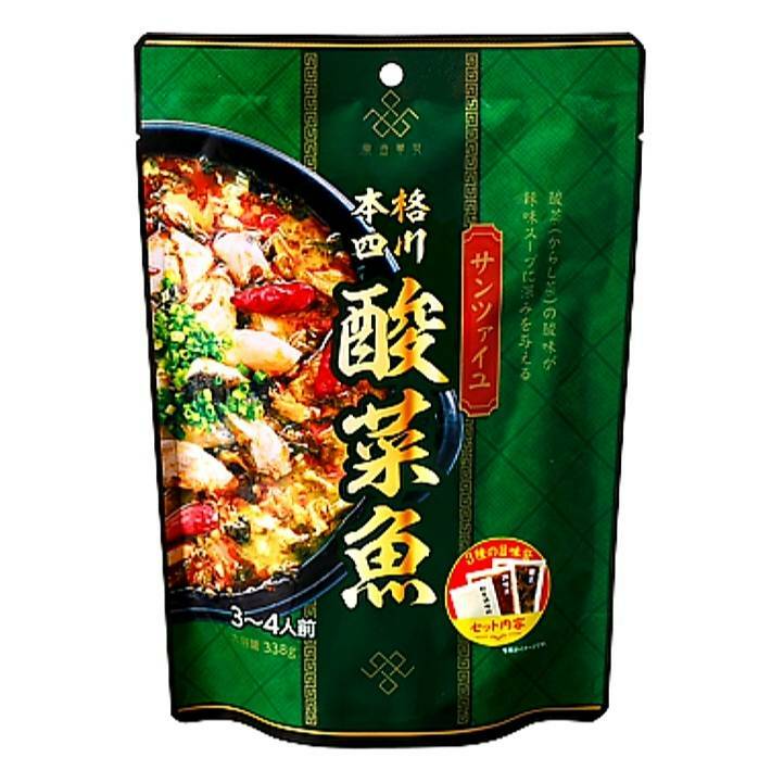 1から材料をそろえて調理するのはハードルが高いですが、業務スーパーでは酸菜魚を作るための調味料セット『本格四川酸菜魚(サンツァイユ)』が販売されています。
